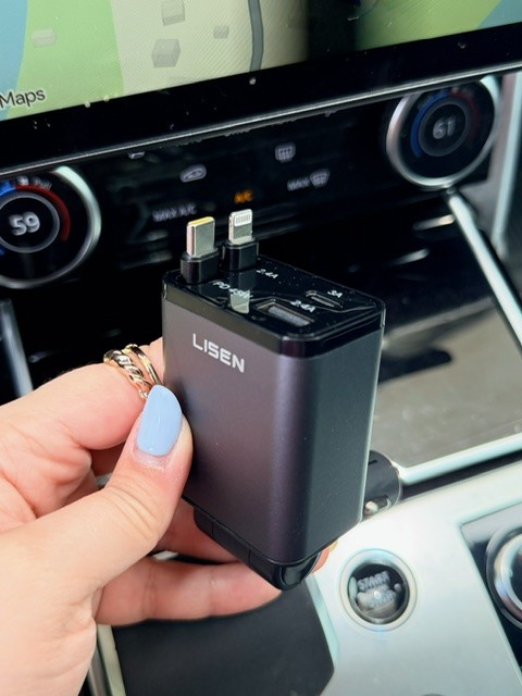 I love that the cords pull out when I need them and snap right back in after—perfect for everyday drives, road trips, or when everyone’s in the car needing a charger at the same time. Also such a practical gift idea going into Mother’s Day.