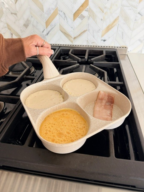 🍳 Breakfast made easy! This 4-cup nonstick egg pan is truly a game-changer. Whether you are craving perfect omelets, pancakes, or fried eggs, it delivers in minutes. Plus, it’s made of durable aluminum, so it’s both healthy and versatile- working seamlessly on gas and induction cooktops. In short, breakfast just got a glow-up 🔥.