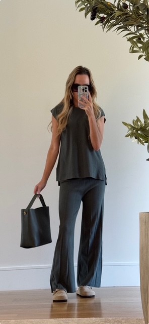 ✨ Comfy, chic, done. But seriously – Can we talk about this lounge set? Featuring a Two-piece knit cap sleeve top paired with wide leg pleated pants, it’s the definition of effortless style. It’s casual enough for lounging at home yet polished enough to actually leave the house. All-in-all, it’s total cozy-meets-chic energy 🖤.