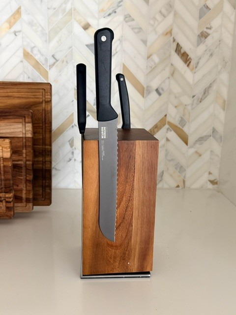 My favorite kitchen switch! I didn’t realize how much visual clutter my old knife block was adding until I swapped to this. I love being able to see every knife at once, and the 360° spin makes grabbing what I need so easy while I’m cooking. The acacia wood is warm, heavy, and honestly just beautiful — this is one of those pieces that stays on my counter because it deserves to be seen. Every time someone walks into my kitchen, this is the first thing they notice.