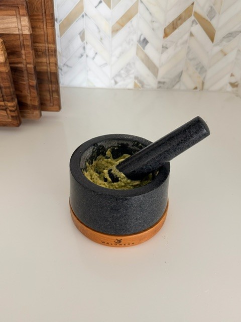 Cooking slowed down! This has completely changed how I cook at home. Grinding spices and garlic by hand makes everything feel more intentional, and I swear the flavors hit different. The weight of it feels so sturdy, and the oak wood base keeps my counters protected while adding that cozy, natural look I love. I keep this out all the time because it’s just too pretty to hide.