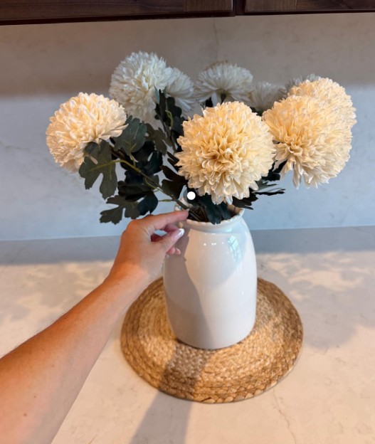 My favorite neutral florals!! I’m very picky about faux flowers, and these honestly surprised me in the best way. The size of the blooms, the long stems, and the soft beige tone make them look so realistic — they don’t scream “fake” at all. I love how full they make a vase look without needing a ton of stems, and they instantly warm up any space. I’ve moved these from my dining table to my entryway to a shelf, and they work everywhere. If you love neutral, boho, calm home vibes but don’t want to worry about wilting flowers, these are such a good find 🌾🤍