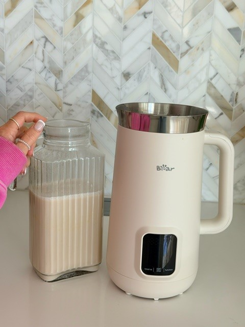Homemade drinks, easy 🥛! I’m obsessed with how simple this makes homemade nut milk. Toss everything in, press one button, and that’s it—no soaking, no straining, no mess. I use it for almond milk, oat milk, soups, even warm drinks. It cleans itself and keeps things warm… I’m sold 🤍